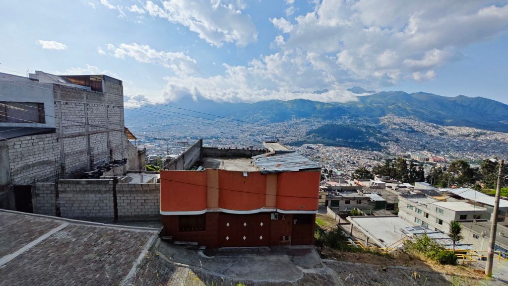 Quito ist, wie die meisten Großstädte in Südamerika, ein Moloch mit mörderischem Verkehr. Wir sind auf einer Höhe um die 3.000 Meter auf einer gut ausgebauten Straße drumherum gekommen unten im Tal bei Stau, Hitze und barbarischen Abgaswolken den Tag zu verbringen.