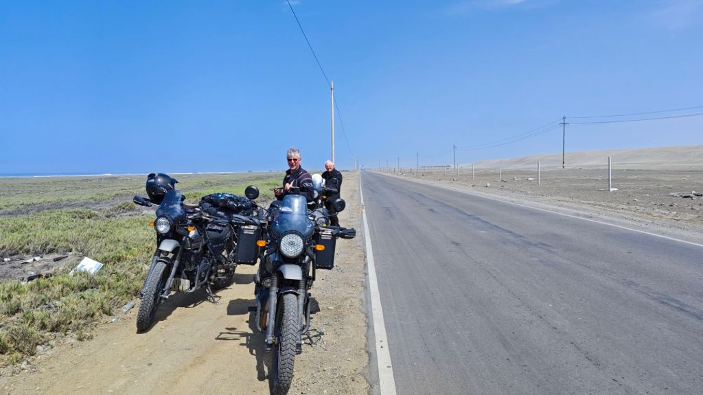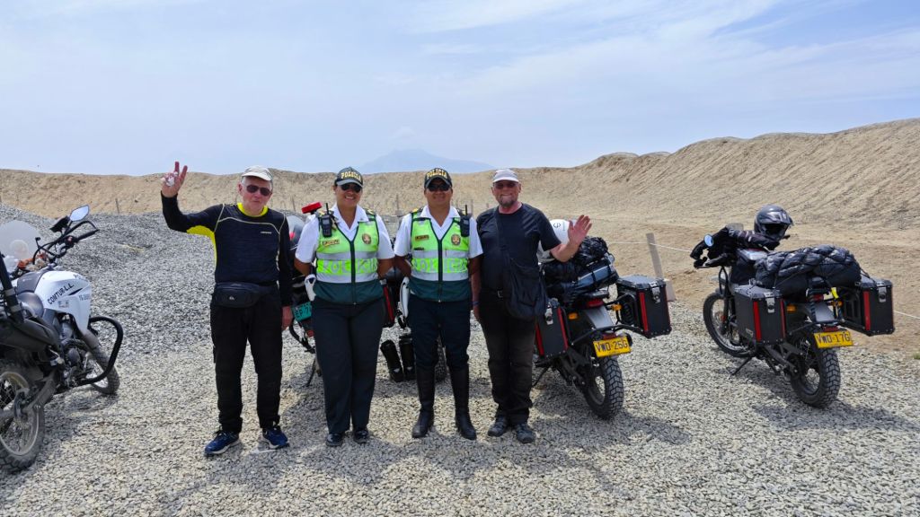 Das Glück war wieder einmal bei uns. In Chan-Chan angekommen waren zwei freundliche Beamte der Touristenpolizei sofort bereit auf unsere Motorräder, die Kombijacken und Stiefel aufzupassen. So dass wir leichter bekleidet einen längeren Rundgang unternehmen konnten.