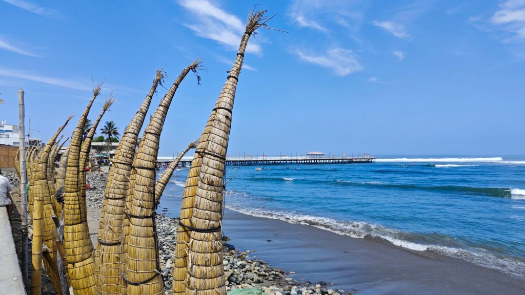 Nachdem wir die Panamericana verlassen hatten, fuhren wir durch riesige Zuckerrohr-Plantagen um dann schließlich in Huanchaco anzukommen.