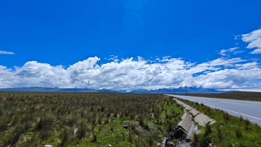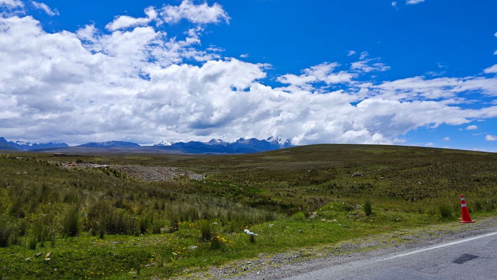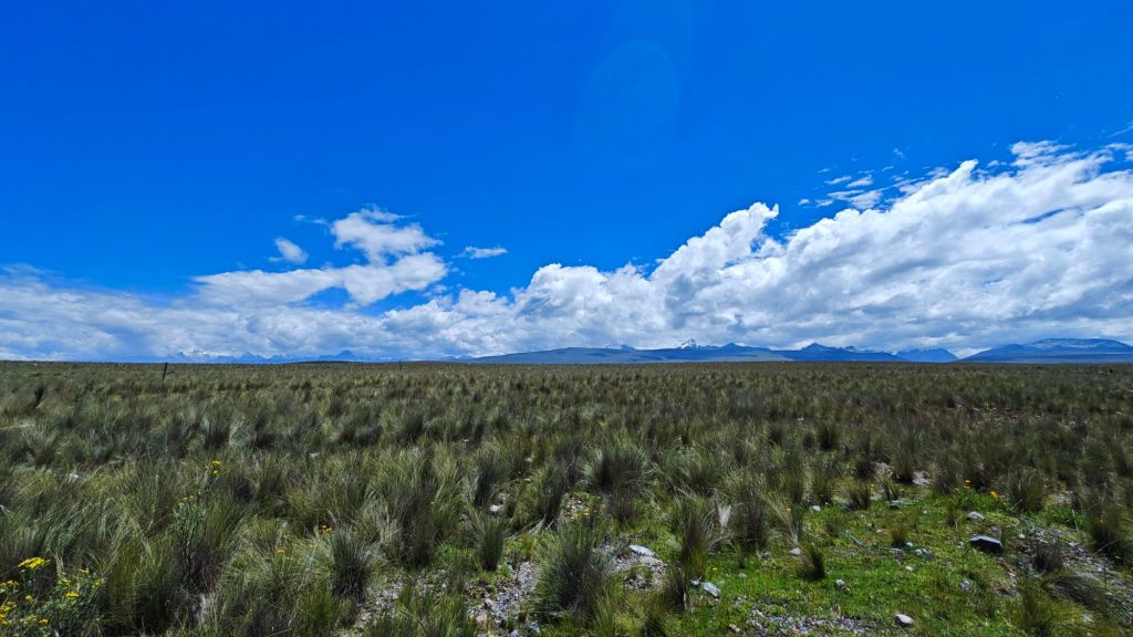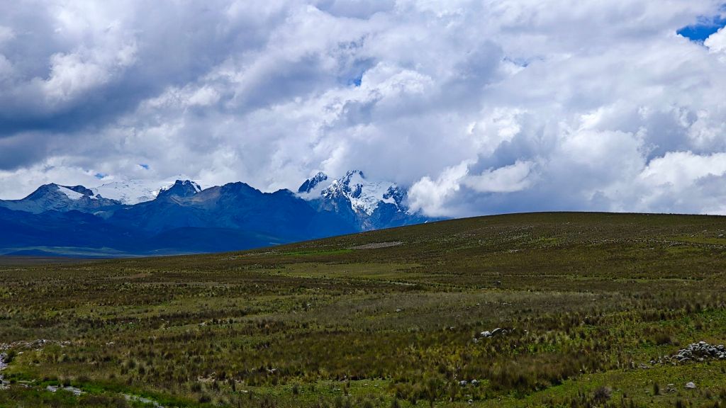 Von Huaraz ging es heute in einem Tal langsam aufwärts bis auf eine Höhe von etwas über 4.000 Meter, dann öffnete sich das Tal zu einer weiten Hochebene mit großartige n Blicken auf die schneebedeckten Gipfel der Cordillera Blanca.