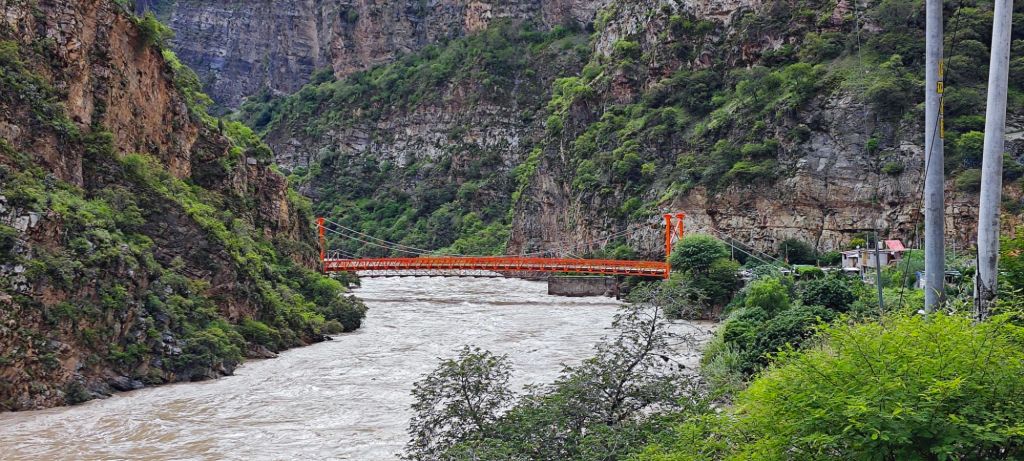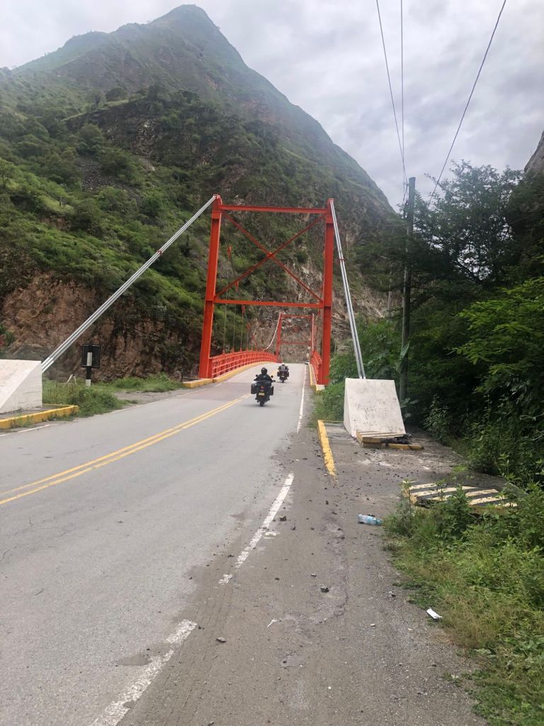Anstelle einer zerstörten Brücke passierten wir einen gigantischen Bergrutsch, der vermutlich die Ursache für die vorgeschlagene Umleitung war.