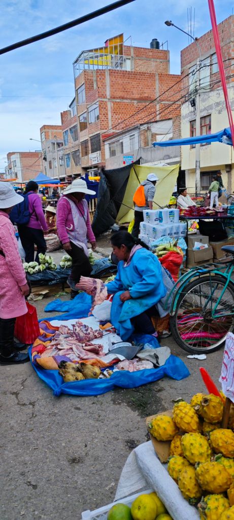 Die Fahrt durch Juliaca verlief gewohnt chaotisch, dichter Verkehr, kreuz und quer, Fußgänger, Hunde, feste und mobile Verkaufsstände, Abgas, Chaos, Müll, Schlaglöcher (gern auch unerwartet), LKW und Mototaxis, alles da.