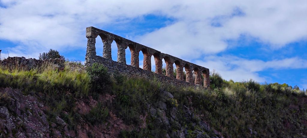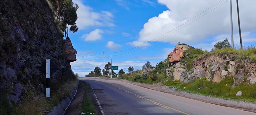 Für Interessierte, falls sich jemand auf die Spurensuche begeben sollte: dem eingeweihten Auge offenbart sich die antike Wasserleitung von Puno kommend kurz hinter diesen Steinköpfen.