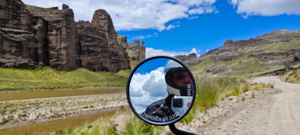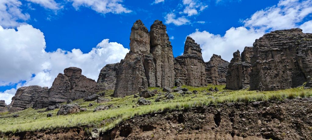 Bislang waren wir ab Puno auf teils sehr gut ausgebauten Straßen unterwegs, die so allmählich von bestem Asphalt, unterbrochen von kurzen Schotterstrecken in reinen Schotter übergegangen waren. Vor allem im Gebiet der großartigen Felsnadeln war die Straße etwas ruppig aber gut zu fahren.