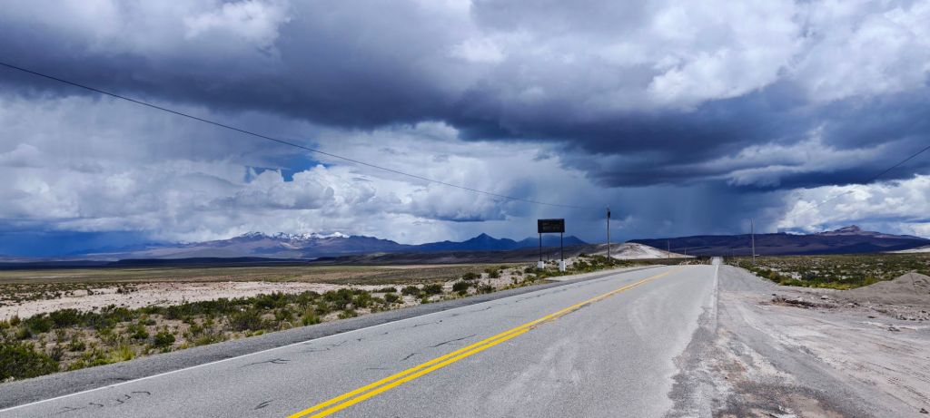 Allerdings wurde das Wetter dort auch nicht besser. Jedesmal wenn es am Horizont heller wurde, hofften wir , dass es jetzt endlich runter Richtung Pazifik geht. Aber Fehlanzeige. Stattdessen ging es rauf auf 4.900 Meter Höhe.