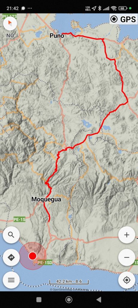 Vom Titicacasee bis zum Pazifik, 440 Kilometer, schneebedeckte Berge, kahle Hochebenen, Lagunen, Lamas, Pazifik. Tolle Strecke!