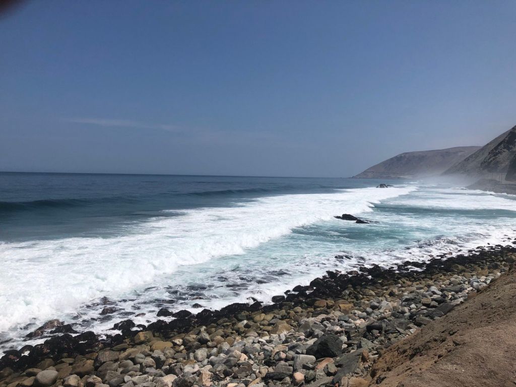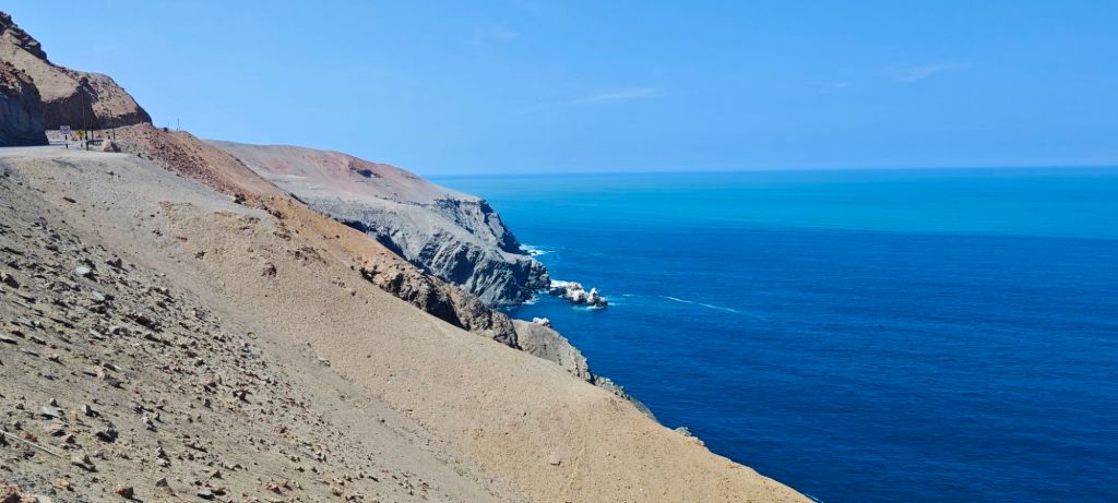 Der heutige Tag führte uns über die Panamericana entlang der Pazifikküste, eine teils atemberaubend schöne Strecke! Grandiose Blicke auf die felsige, zerklüftete Küste, wo unten die Pazifikwellen branden, die Gischtdunst über die Küste legen und oben die Wüstenberge, kakteenbestanden oder nur aus Sand, in die Höhe ragen.