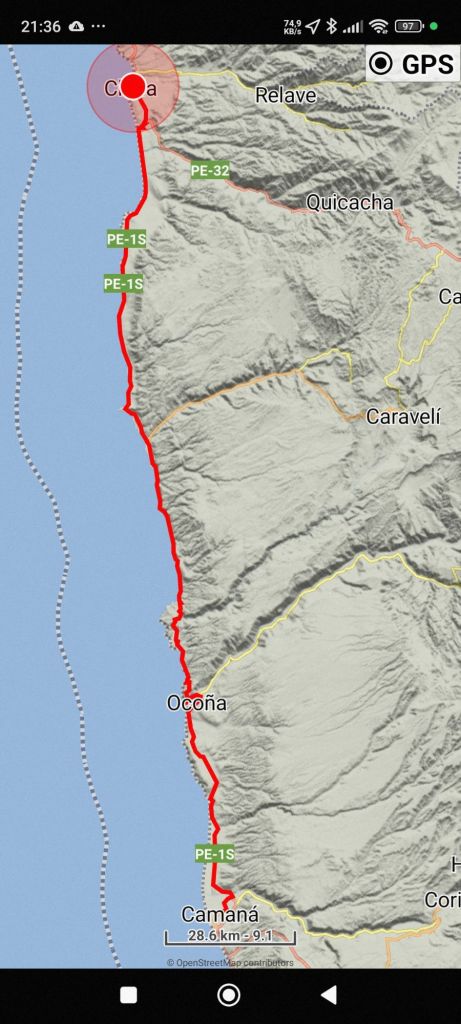 Dazwischen immer mal wieder eine Quebrada, eine wasserführende, oft breite Schlucht, die aus den Bergen kommend zur Pazifikküste führt.