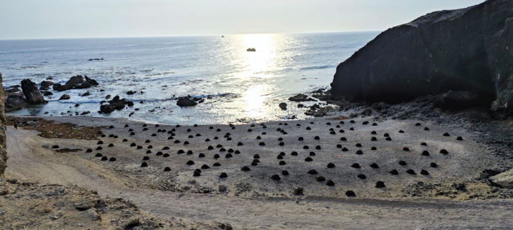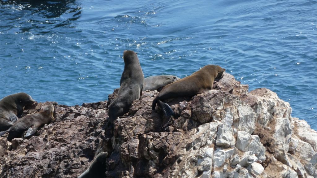 Leider konnte ich auf dem Handy keine Seelöwen erkennen. Und auf einem anderen Strandfoto habe ich mich gefragt, was das für schwarze Häufchen sind, die wie Maulwurfshügel aussehen. Vielleicht muss ich mir die Fotos doch mal am PC angucken.