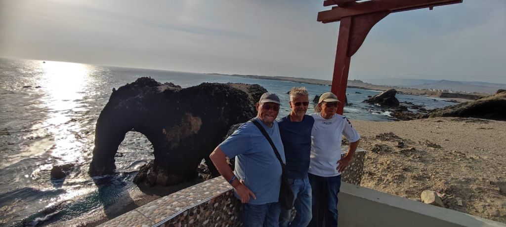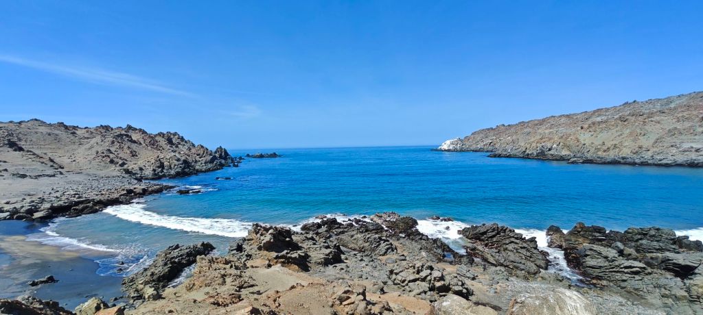 Heute waren wir fast ausschließlich auf der Panamericana unterwegs. Links die Wellen des Pazifik, die gegen die Felsen branden oder an einem langgezogenen Strand auslaufen und auf jeden Fall einen Saum von Dunst über die Küste legen und unsere Visiere trüben.