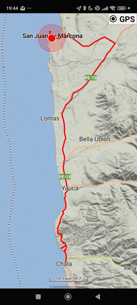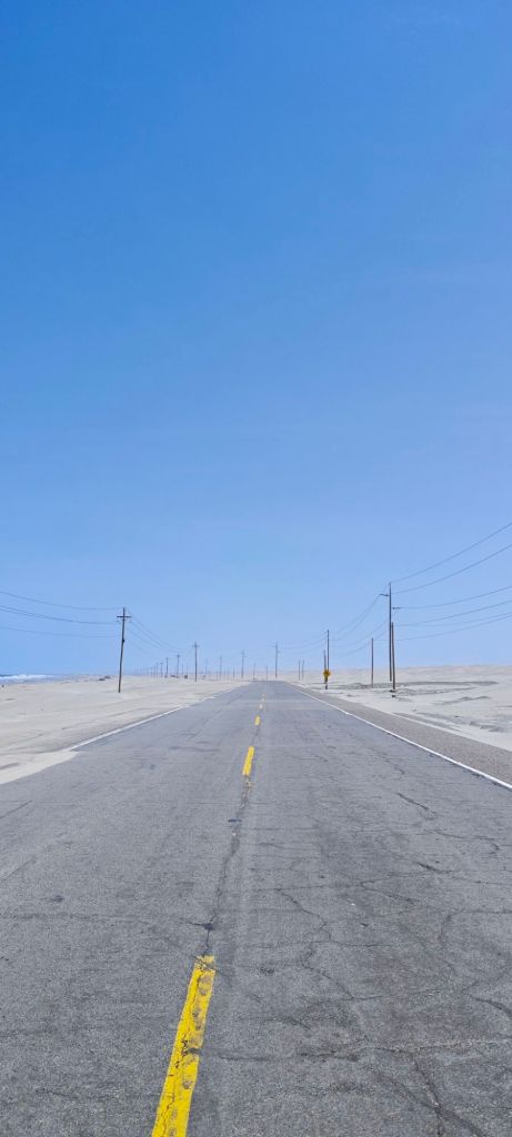 Der Fehler: wir haben einen Abzweig nach Puerto de Lomas verpasst, das wir uns ansehen wollten. Stattdessen sind wir auf der Panamericana weiter in die Wüste gefahren. Das fuhr sich so schön…..