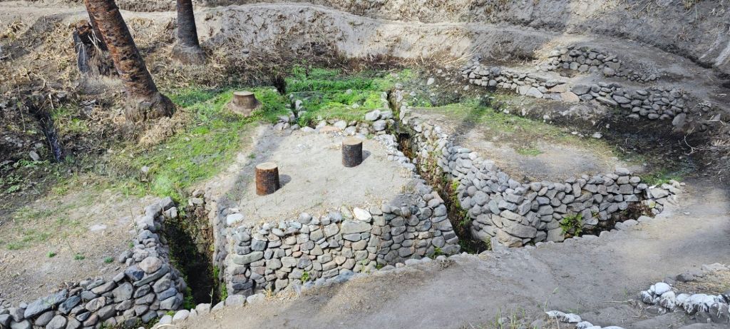 An einer anderen Stelle wurden mehrere Gräben in einen Hang getrieben, in denen sich dann das Wasser sammelt.