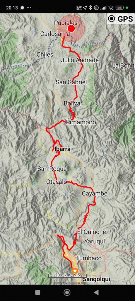 Raus aus Quito ging sehr schnell; auf einer teils 4-Spurigen Straße, etwas oberhalb am Rand der Stadt mit wenig Verkehr.